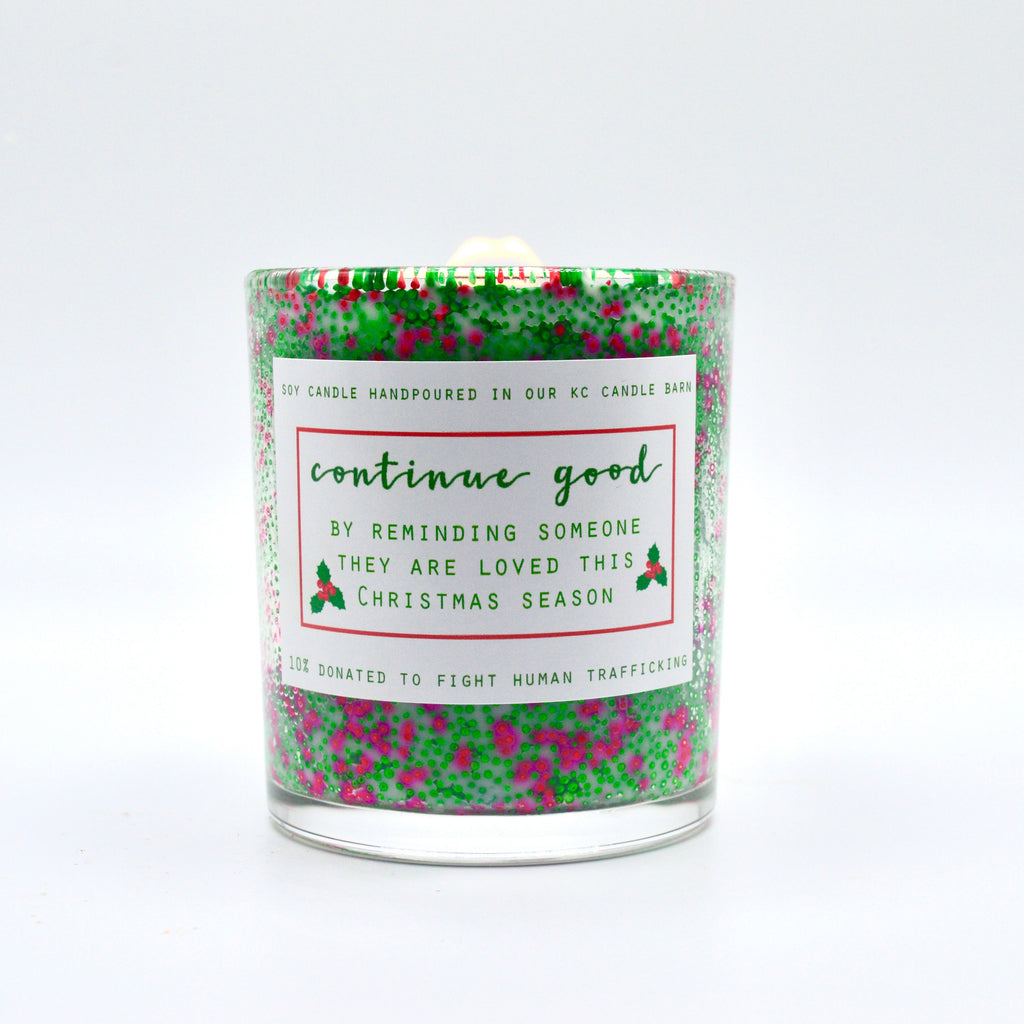 | D E T A I L S : | NOTES OF HOLLY, CRANBERRY, FIR, PINE, CINNAMON, VANILLA, RED CURRANT, & GREEN LEAVES / BACK CANDLE READS: CONTINUE GOOD BY REMINDING SOMEONE THEY ARE LOVED THIS CHRISTMAS SEASON |